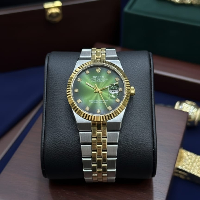 Available in a variety of sizes, dial colors, and bracelet options, it offers versatility that suits any lifestyle. The fluted bezel, polished finish, and instantly recognizable Cyclops lens over the date create unmistakable style, while Rolex’s renowned Swiss craftsmanship ensures reliability and longevity. The Datejust is not just a watch—it is a timeless expression of prestige and sophistication.